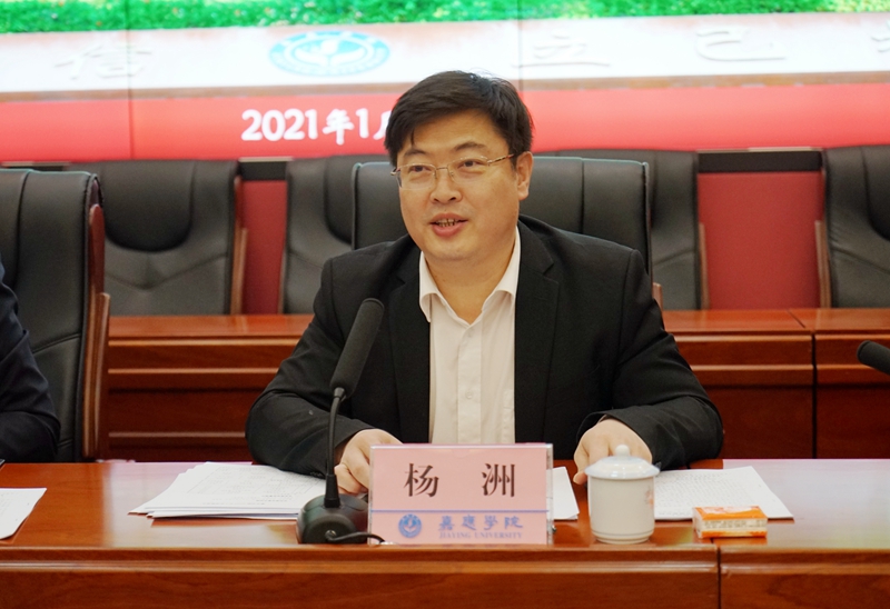 会上,杨洲全面回顾我校2020年取得的成绩:党的建设全面加强,各项事业持续向好;学科建设重点明确,“申硕”步伐加快;专业建设质量提升,教育教学成果丰硕;师资引育成效明显,引进博士数量比去年同期翻了一番;平台建设效果显著,首次获批省重点实验室;人才培养量质双升,育人成效明显;科技服务强势推进,科研经费突破亿元大关;“幸福嘉园”共建有力,师生获得感、幸福感、安全感不断增强;学术交流合作更加丰富,影响不断扩大。重点部署了2021年学校八项重点工作:加强党的建设,发挥党建引领作用;坚持底线思维,筑牢发展根基;谋划发展蓝图,构建发展新格局;深化内涵建设,提高核心竞争力;强化专业建设,提高教育教学质量;深化体制机制改革,激发办学活力;提升办学条件,优化育人环境;实施民生工程,建设“幸福嘉园”。