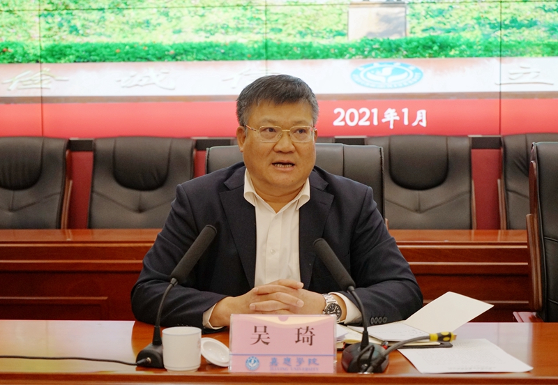 吴琦在讲话中指出,本次会议的目的在于总结2020年工作,围绕“十四五”规划和“申硕”工作进行2021年工作部署,确保新一年的工作开好局、起好步、出成效。他充分肯定我校全体教职工在疫情防控和学校改革发展工作中付出的努力,并取得了疫情防控和学校高质量发展“双胜利”,各项工作稳步向前迈进、取得可喜成绩。他强调,看到成绩的同时,仍然要清醒地认识到学校在对标申硕主要指标等方面存在的短板,紧紧围绕学校中心工作,按照新一年的工作部署,履职尽责担当,抢抓时间、抓紧推进、抓好落实。同时,他还要求全体干部要始终坚持以习近平新时代中国特色社会主义思想为指导,贯彻党的教育方针,坚持和加强党的全面领导,坚定信心、迎难而上,凝心聚力、克难攻坚,奋力推动学校高质量发展,为学校“十四五”开好局、起好步和早日实现申硕目标作出更大贡献,以优异成绩庆祝建党100周年。