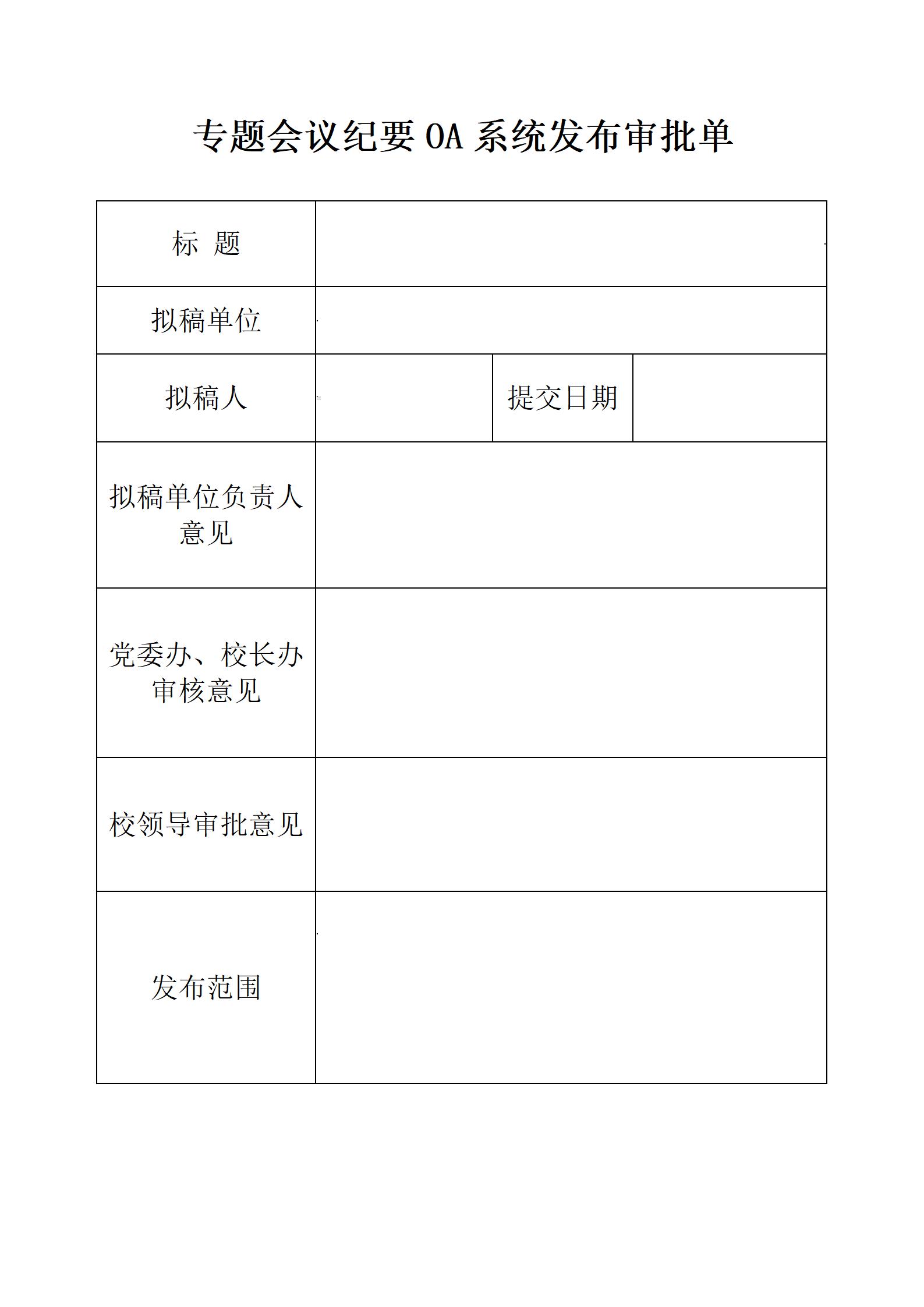 专题会议纪要OA系统发布审批单